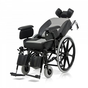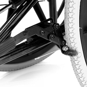 - Кресло-коляска оснащена съемными, откидными, регулируемыми по высоте подножками с мягкими упорами для голени.