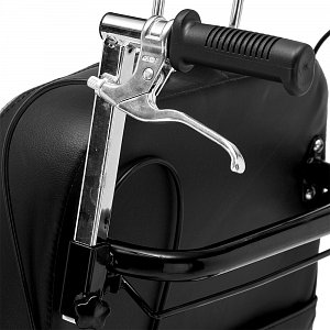 - Дополнительно кресло-коляска оснащена ручными тормозами, расположенными на ручках управления.
