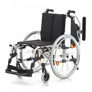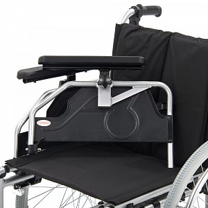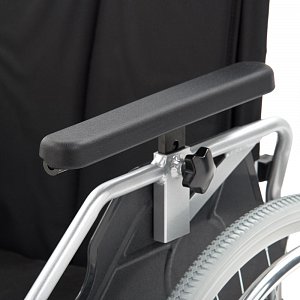 - Кресло-коляска оснащена несъемными, откидными, регулируемыми по высоте подлокотниками.