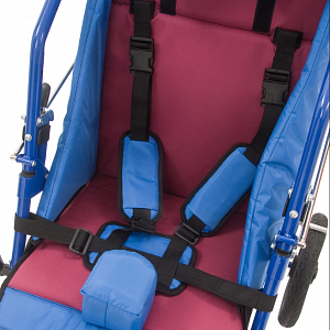 - Ремень безопасности: Кресло-коляска оснащена плечевыми ремнями безопасности.