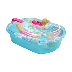 Оригинальный игровой набор "Puppy Adventure. Набор для купания щенков" от Barbie станет замечательным подарком для девочки от 3 лет. Он включает в себя красавицу Барби, ванночку и двух собачек. Чтобы начать игру, нужно налить в ванночку воды и запустить туда игрушечных собак. Если нажать на кнопку на шее большой собаки, она начнет плавать, описывая круги по ванночке. Щенка можно посадить на спину мамы-собачки, и он тоже сможет учиться плаванию. Развлечение с набором Barbie надолго займет малышек!