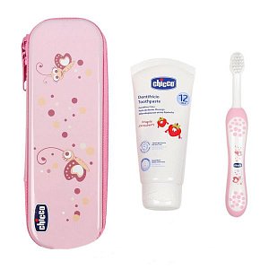 Набор для чистки зубов Chicco, розовый, поможет Вашему ребенку заботиться о своих зубах уже с первых лет жизни.