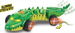 Автомобиль выполнен в ярком дизайне, стилизованном под аллигатора, цветовая гамма сочетает ярко-зеленый и желтый цвета. Машинка является электромеханической - работает от батареек, запускается в движение при помощи кнопки, расположенной в верхней части корпуса, оснащена звуковыми и световыми эффектами.