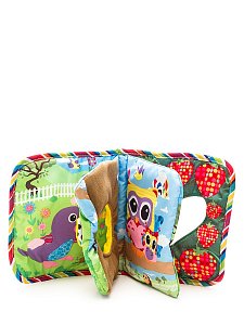 Эта книжка-подвеска под названием «Зайка Белла играет в прятки» выполнена из разнофактурных типов ткани, обладающих яркой и привлекательной расцветкой. В книжке целых 4 странички, на которых ребенок сможет поразглядывать веселые картинки и разнообразные мелкие детали. Главным героем этой книги выступает зайчиха Белла, которая умеет искусно играть в прятки. Еще одной особенностью, помимо фигурки зайки, является особое колечко, за которое можно прицепить эту подвеску к коляске или кроватке.