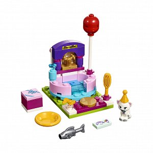 С новым набором из серии "Friends" от бренда Lego ваш ребенок сможет пополнить свою коллекцию красочными фигурками и конструкциями! Благодаря множеству разнообразных деталей можно легко устроить игрушечный день рождения в стиле "Лего" с салоном красоты: для этого в комплекте есть ванная, расческа, кошечка, рыбка, тарелка, а также коробка с подарком. С помощью фантазии малышка сможет придумать множество композиций и сценариев для игры, а во время конструирования - развить воображение и мелкую моторику рук.