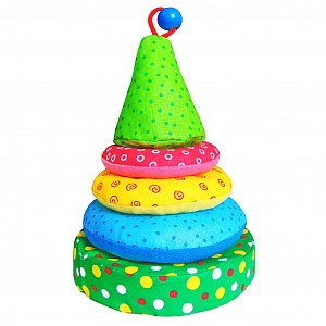 - Красочная мягкая пирамидка безопасна и чрезвычайно приятна на ощупь, поскольку сшита с использованием натуральных гипоаллергенных материалов.