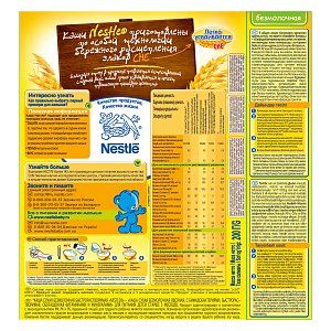 Безмолочная овсяная каша Nestle приготовлена с использованием особой технологии бережного расщепления злаков CHE. Благодаря этому в продукте появляется естественный сладкий вкус, каша лучше усваивается и имеет повышенную пищевую ценность. Каша является полезным сбалансированным прикормом для здоровых детей. Обогащена витаминами и микроэлементами, содержит пробиотики - живые бифидобактерии комплекса BL. Они способствуют нормализации пищеварения, росту здоровой микрофлоры и укреплению иммунитета,что очень важно на начальном этапе введения прикорма.