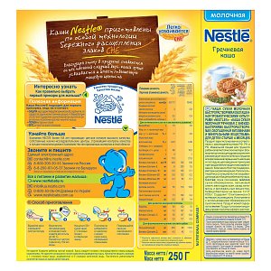 Молочная гречневая каша Nestle приготовлена с использованием особой технологии бережного расщепления злаков СНЕ. Благодаря этому в продукте появляется естественный сладкий вкус, каша лучше усваивается и имеет повышенную пищевую ценность. Каша не содержит глютен и является полезным сбалансированным прикормом для здоровых детей и детей с непереносимостью глютена. Обогащена витаминами и микроэлементами, содержит пробиотики - живые бифидобактерии комплекса BL, способствующие нормализации пищеварения, росту здоровой микрофлоры и укреплению иммунитета, что очень важно в период введения прикорма.