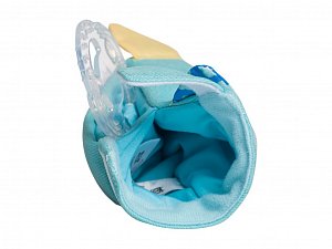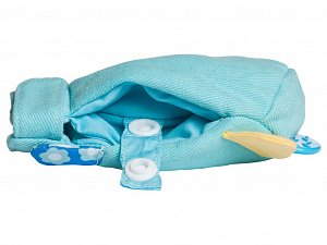 - Рукавичка легко фиксируется на запястье малыша благодаря мягкой застежке-липучке. Поэтому малыш не выронит прорезыватель из рук. Это особенно удобно на прогулке или в дороге.