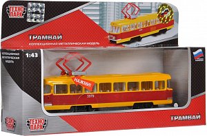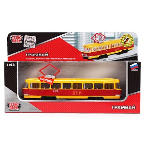 Великолепная модель ретро-трамвая, который колесил по улицам российских городов в советское время, сделан из пластика. Он в точности повторяет внешний вид и салон этого красно-жёлтого транспорта. Малыши будут с удовольствием играть с трамваем, у которого установлен инерционный механизм, световые и звуковые спецэффекты.
