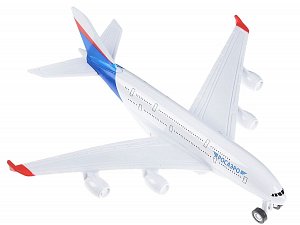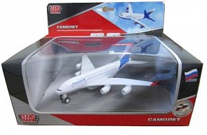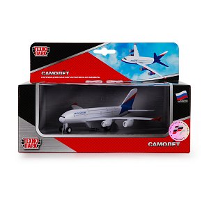 Инерционный самолет от "Технопарк" копирует внешний вид настоящего авиалайнера с четырьмя мощными турбинами.