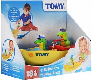 Развлечь ребёнка во время купания поможет игрушка для ванной от компании TOMY (Томи) – Крокодил на водных лыжах! В комплект игрушки входит лодочка, водные лыжи и два забавных крокодильчика, рассекающих водное пространство Вашей ванной! Яркая красочная игрушка насыщенных, привлекающих внимание малыша цветов, долго будет радовать Вашего ребёнка, не позволяя ему заскучать принимая ванну!