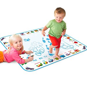 Tomy Классический набор Aquadoodle - напольный коврик для рисования водой. На коврике для рисования водой можно рисовать карандашом-маркером (входит в комплект), обычными кисточками, мокрыми ручками и ножками. Маркер аквадудла наполняется обычной водой из-под крана. В течение 5-7 минут все рисунки исчезают, и можно рисовать снова и снова. И при этом руки и одежда Вашего художника всегда останутся чистыми! Аквадудл - один из лучших способов развить творческий потенциал вашего ребенка! Созданные по японской технологии коврики Aquadoodle, на которых малыши могут с легкостью оставлять водные каракули, являются безопасными и увлекательными в мире открытий вашего ребенка. Акваковрики способствуют самообучению и познанию мира, развивают внутренний потенциал. Даже самые маленькие художники с помощью такого чудо-коврика могут приступать к водным каракулям. Для этого не требуются краски и бумага, достаточно лишь мокрой ладошкой провести по поверхности коврика, и малыш будет в восторге, увидев отпечатки пальчиков. В комплект входят: коврик для рисования 75x75 см наполняемый водой карандаш-маркер.