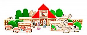 Ребенок весело проведет время, играя в конструктор и развивая свое воображение, координацию движений, концентрацию внимания и логическое мышление, научится различать цвета и формы. Игровой набор изготовлен из натурального дерева, обладает приятным древесным запахом, который оказывает благоприятное воздействие на эмоциональное состояние ребенка. Деревянные фигурки приятно держать в руках. Многочисленные предметы, входящие в состав набора, помогут развить фантазию ребенка. Построив ферму, он будет придумывать разные сюжеты, распределяя роли по своему усмотрению.
