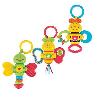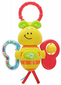 Потрясите погремушку - и вы услышите, как гремят бусинки. Разноцветные шарики не дадут скучать малышу, также пчелка поет песенки из мультфильмов и мигает, это вызывает интерес и привлекает внимание малыша.