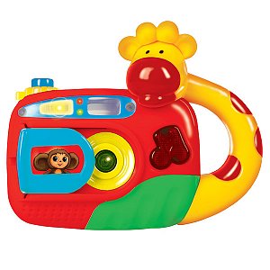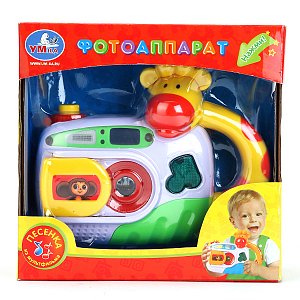 Развивающая игрушка в виде фотоаппарата с изображением очаровательного Чебурашки и объемной фигурки жирафа, привлечет внимание малыша. Нажимая на кнопочку Ваш кроха с удовольствием будет "фотографировать" различных животных. Игрушка имеет интересный дизайн, удобную форму и небольшой размер. При нажатии на кнопочки воспроизводится веселая песенка из мультика. Фотоаппарат способствует развитию мелкой моторики и крупной моторики, координации движений, цветового и звукового восприятия.