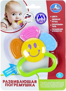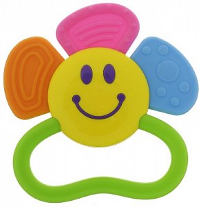 Погремушка способствует развитию слуха и мелкой моторики. Такая яркая погремушка поможет успокоить вашего малыша и снять дискомфорт с детских десен во время роста первых зубов.