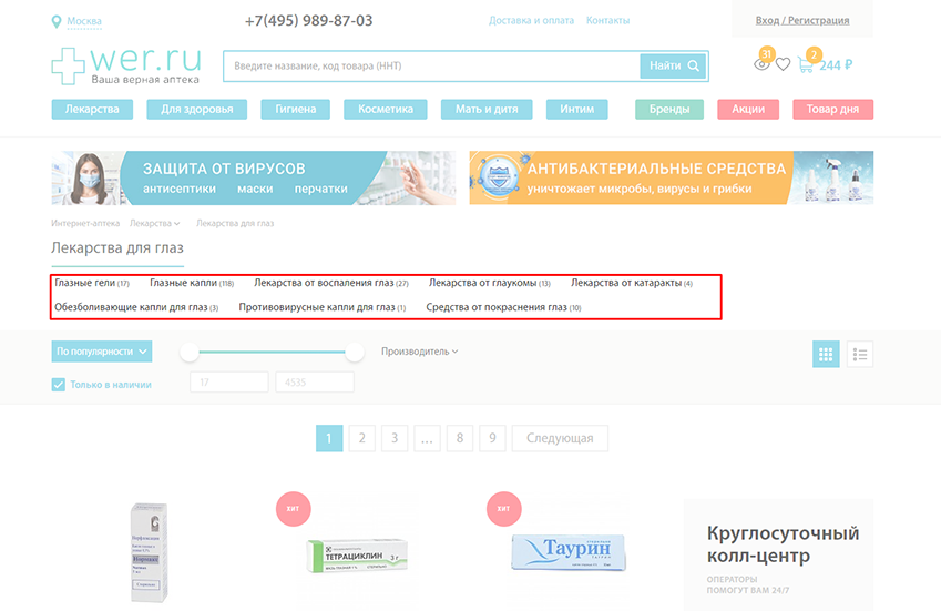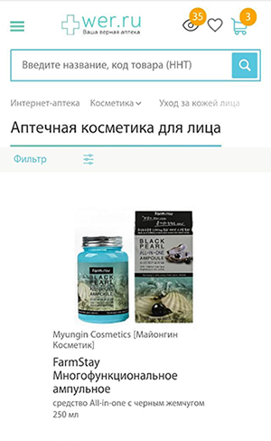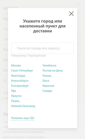 - Чтобы найти нужный товар, введите его название в поисковую строку. Искать можно также по фирме-производителю, а препараты — по действующему активному веществу.