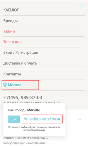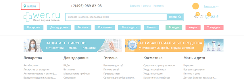 - Проверьте, правильно ли определился ваш географический регион (сайт определяет его автоматически). В зависимости от региона цены на товары могут немного отличаться, поэтому лучше сразу исключить возможные недоразумения.