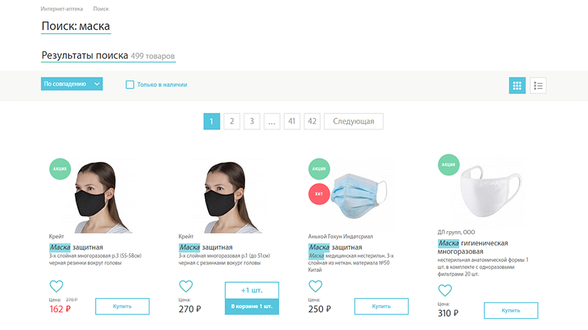 - Страницы поисковой выдачи и подразделов каталога имеют схожий вид. Можно сразу направить нужный товар в Корзину нажатием на кнопку "Купить", либо отложить на будущее в Избранное. Для получения подробной информации о товаре, кликните по его названию или картинке.