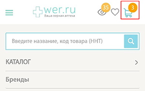 - В Корзине — список выбранных товаров. Можно изменять их количество, либо удалять. Если в заказе присутствуют рецептурные препараты, аптека вправе не отпускать вам эти препараты, при отсутствии рецепта.