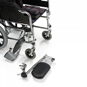 - Кресло-коляска оснащена двумя съемными, поворотными подножками с мягкими упорами для ног.
