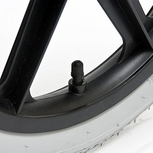 - Кресло-коляска оснащена колесами, имеющие задние цельнолитые или пневматические шины и передние цельнолитые шины.
