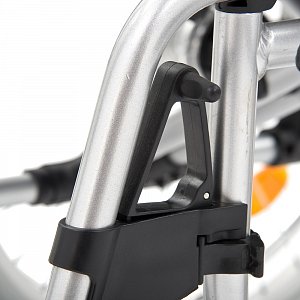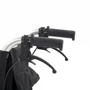 - Дополнительно кресло-коляска оснащена ручными тормозами, находящимися на ручках управления.