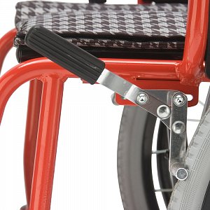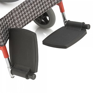 - Кресло-коляска оснащена съемными, поворотными подножками, регулируемыми по высоте с мягким упором для голени.