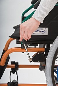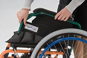 - Кресло-коляска оснащена несъемными, откидными подлокотниками.