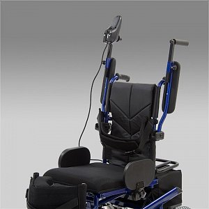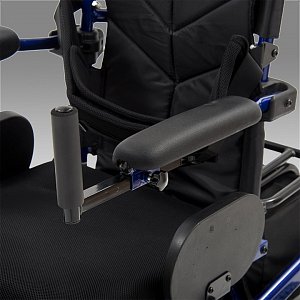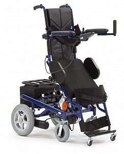 - Кресло-коляска оснащена вертикализатором, который позволяет изменять высоту, положение, угол наклона пользователя.