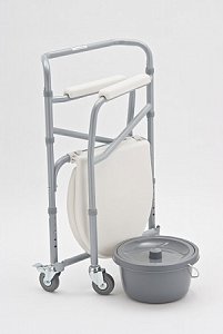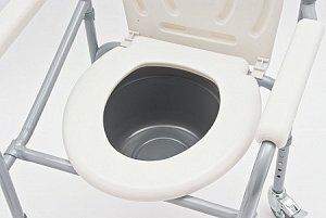 Кресло-туалет оснащено маленькими колесиками, что облегчает его передвижение. Имеет 7 уровней регулировки высоты.