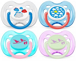 Цветная пустышка с рисунком Philips Avent серия Classic имеет симметричную мягкую ортодонтическую соску и учитывает естественное строение и развитие неба, зубов и десен младенца. Рекомендуется для возраста 0-6 месяцев. Плоские симметричные неслипающиеся соски пустышек Philips Avent каплевидной формы гарантируют комфорт, даже если пустышка переворачивается во рту. Соски всех пустышек Avent изготовлены из силикона - идеального материала без вкуса и запаха, который не вступает в реацию со слюной и не вызывает аллергии, в отличие от латекса. Можно стерилизовать и мыть в посудомоечной машине. Защитный колпачок сохраняет пустышку чистой. Предохранительное кольцо-держатель позволяет с легкостью вынуть пустышку в любой момент.