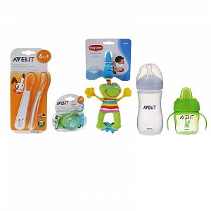 Набор универсального зеленого цвета от известного бренда Avent Philips понравится мальчику или девочке.