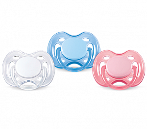 Процесс сосания действует на малышей успокаивающе, вот почему пустышка порой помогает успокоить ребенка, когда, кажется, ничто другое не действует.Давая малышу пустышку Philips AVENT, мама может не волноваться: симметричная соска каплевидной формы не нарушает естественное развитие зубов и десен.Ободок пустышки имеет вентиляционные отверстия, что не позволяет слюне скапливаться и снижает вероятность раздражения кожи ребенка.Защитный колпачок с защелкой сохранит соску в чистоте.Сама соска выполнена из прочного, долговечного, гигиеничного материала – силикона. Теперь пустышки Philips AVENT стали еще безопаснее: ободок новой пустышки изготавливается из материала Тритан, не содержащего бисфенол А.Соски не имеют ни вкуса, ни запаха, поэтому малыши принимают их более охотно. Мягкие, гладкие, прозрачные, крепкие, долговечные, легко моются.Шесть отверстий в изогнутом ободке создают комфорт для вашего малыша.Сжимаемые соски пустышек Philips AVENT физиологичны и абсолютно симметричны по форме, таки образом, даже если пустышка перевернется во рту малыша, естественное развитие зубов и десен не нарушится.