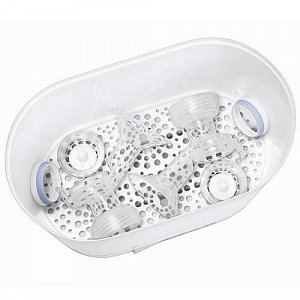 Philips Avent SCF 284/03 - стерилизатор, который можно регулировать по размеру. Вмещает все необходимое для стерилизации и не занимает много места. Стерилизация паром уничтожает 99.9% болезнетворных микробов. Изготовлен из материалов, не содержащих бисфенол-А Малый размер для стерилизации пустышек, cредний размер для стерилизации молокоотсосов, тарелок, ложек и вилок; большой размер для стерилизации 6 бутылочек Позволяет стерилизовать бутылочки как с узким, так и с широким горлышком, а также молокоотсосы и аксессуары. При полной загрузке стерилизатор вмещает шесть бутылочек Philips AVENT объемом 330 мл.