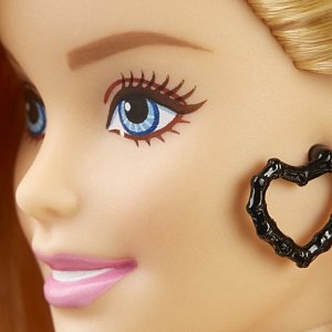 Куколка Barbie обожает красивые и модные наряды, в которых всё продумано до мелочей. Она одета в яркую юбку-карандаш, укороченный топ и оранжевые босоножки на каблуках. Образ дополняют объемные серьги черного цвета.