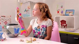 Русалочка с волшебным хвостом идеально подходит для игр в ванной. Нажмите на кнопку в ожерелье Барби, и её хвост засияет всеми цветами радуги.