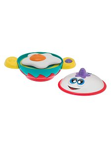 Крышка кастрюльки снимается, и готовую яичницу можно выложить на игрушечную тарелку.