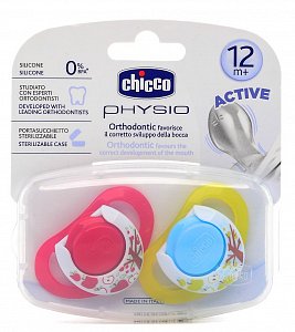 Chicco Пустышка силиконовая Яркий цвет 12+ 2 шт.