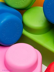 В комплект входят 11 разноцветных элементов конструктора из полимера, приятного на ощупь.