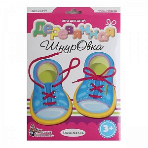 Деревянная шнуровка Башмачки может понравиться девочкам и мальчикам своим оформлением.
