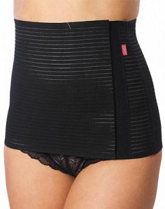 Бандаж в виде широкого корсетного пояса корректирует область живота и талию, способствует восстановлению фигуры после родов.