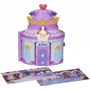 Новый игровой набор "Бутик Рарити" из серии My Little Pony от Hasbro станет любимой игрушкой для вашей девочки! Внешне игрушка похожа на небольшой круглый домик, крышу которого украшает сердечко. В нем есть три разных помещения: спальня, спа-салон и прихожая! Внутри домик разделен несколькими картонными "страничками", на которых нарисован интерьер комнаты. Перелистнув раз, получится ванная комната, второй - прихожая, третий - пони Рарити окажется в спа-салоне. Меняются декорации одним движением руки, нужно лишь перелистнуть страничку! Также в наборе есть более 20 аксессуаров, которыми можно обставлять комнаты.