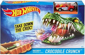 С игровым набором Город чудовищ ребенок сможет собрать новый невероятный трек для гоночных машинок "Хот Вилс". В комплекте представлены пусковой механизм, машинка и голова гигантского крокодила.