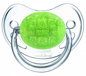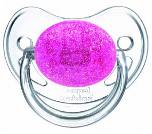 - Латексная круглая пустышка с прозрачным основанием и кольцом, цветной диск содержит искрящиеся частички, создаюшие эффект мерцания.