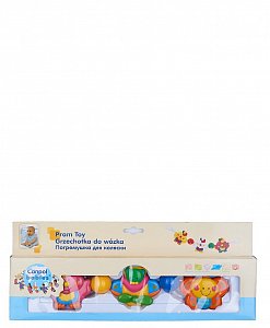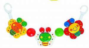 - Эта красочная пластмассовая погремушка крепится на коляску и делает ежедневные прогулки более интересными.