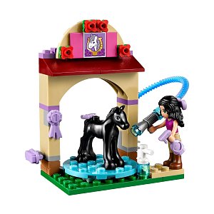 Великолепный конструктор торговой марки Lego непременно понравится юным принцессам. Главная героиня - Эмма посетила салон для жеребят, где познакомилась с одним из них - Алмазом, после чего помогла лошадке преобразиться при помощи специального душа, средств для ухода и аксессуаров. В итоге встречи девочка угостила своего нового друга разнообразными вкусностями из корзинки. Все детали конструктора выполнены из высококачественного пластика и совершенно безопасны для ребенка. Такое развлечение придется по душе девочкам старше шести лет, оно поможет развить фантазию, мелкую моторику и пространственное мышление. Побалуйте свою красавицу конструктором "Салон для жеребят".