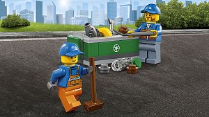 В наборе присутствуют 2 минифигурки рабочих с разнообразными аксессуарами.
