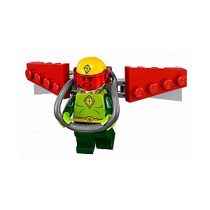 - У её минифигурки слитная нижняя часть туловища, надеты мощные наплечники в виде крыльев и есть 2 выражения лица: довольное и злое.